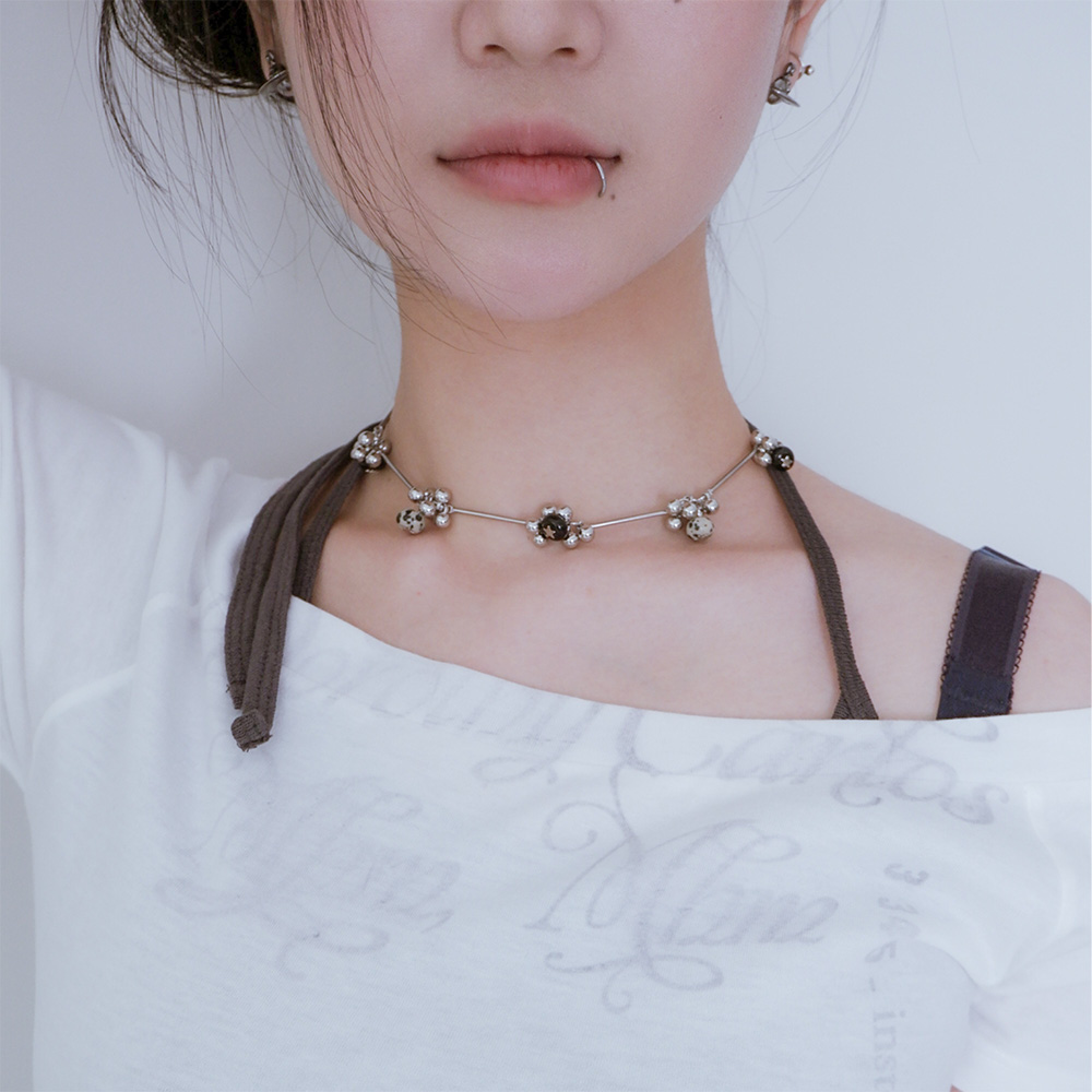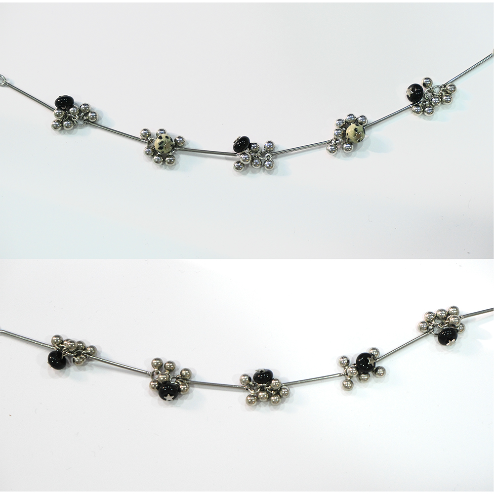 材質:鈦鋼鍊條|白k吊飾|斑點石