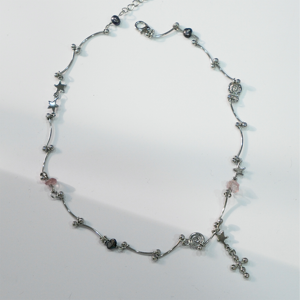 材質:粉金|黑珍珠|白k吊飾|白k鍊