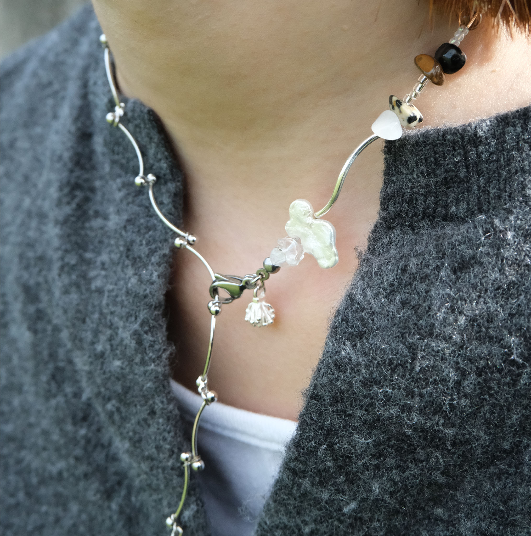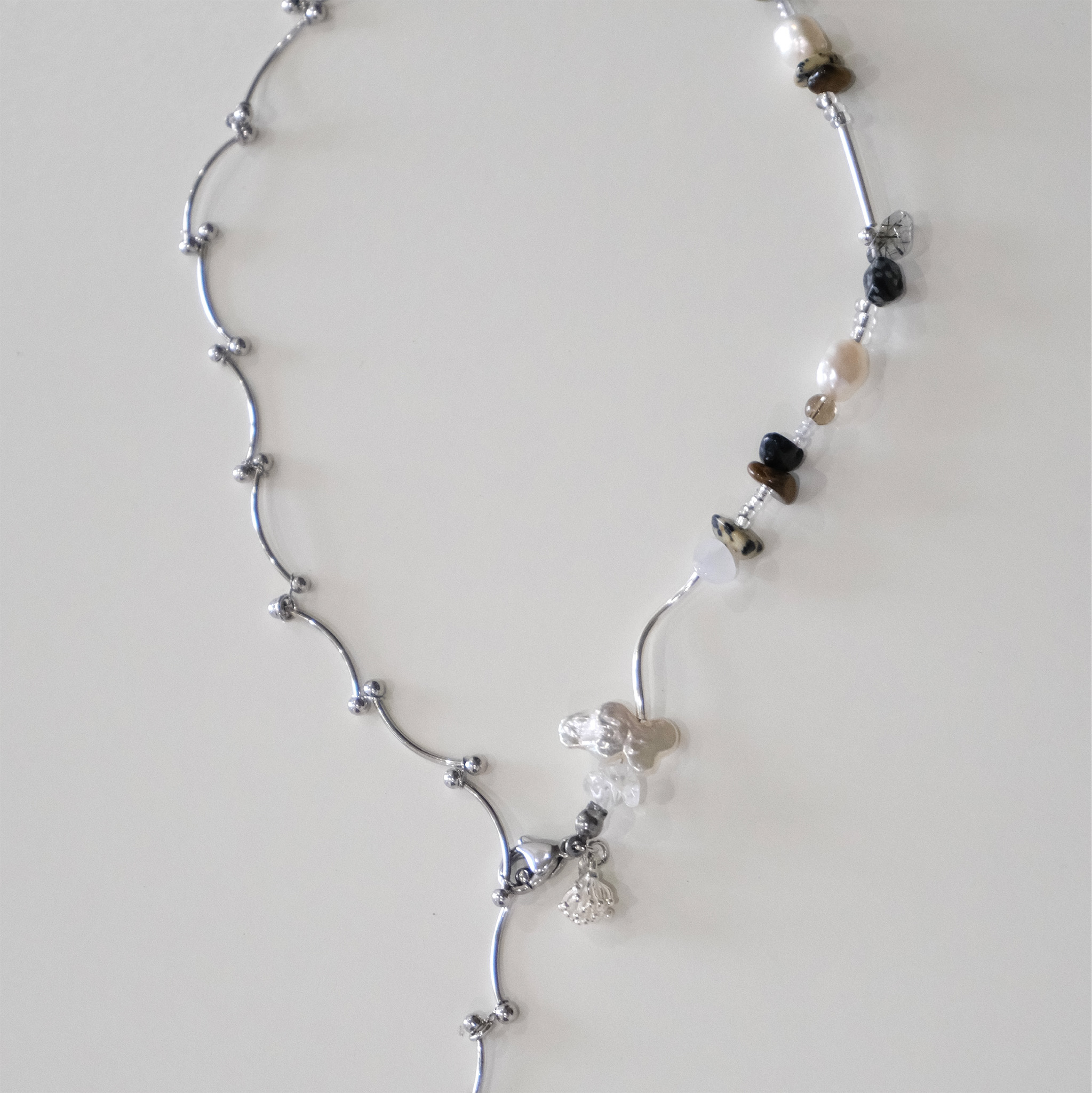 材質:純銀銀管|純銀吊飾|蝴蝶淡水珍珠|淡水珍珠|礦石(斑點、虎眼、黑曜、白水晶、髮晶)|白k管鏈