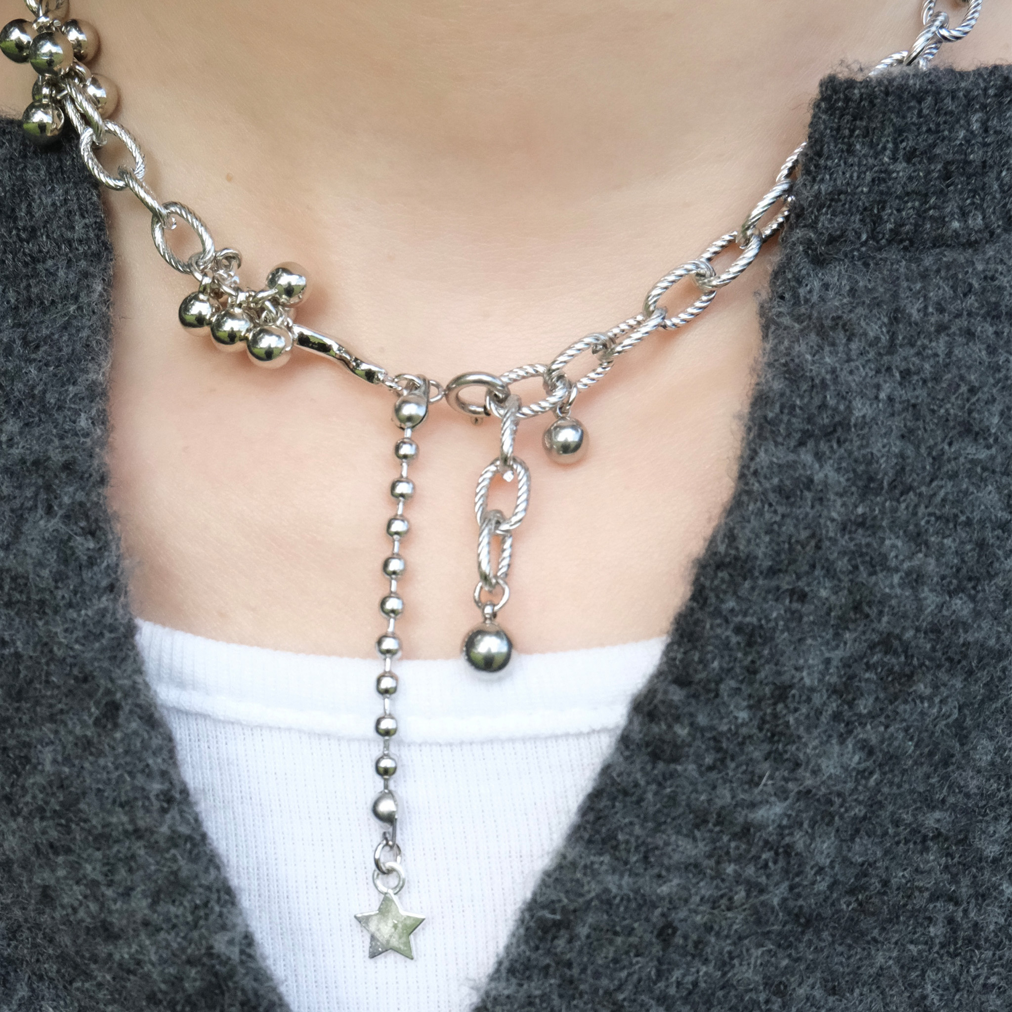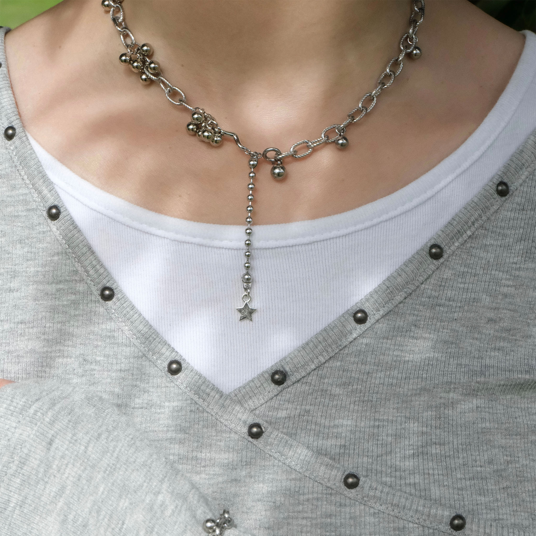 材質:鈦鋼鍊條|鍍白k葡萄球球