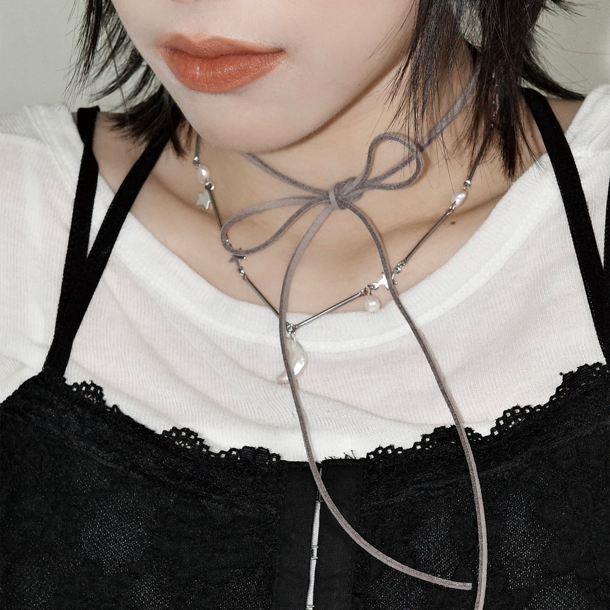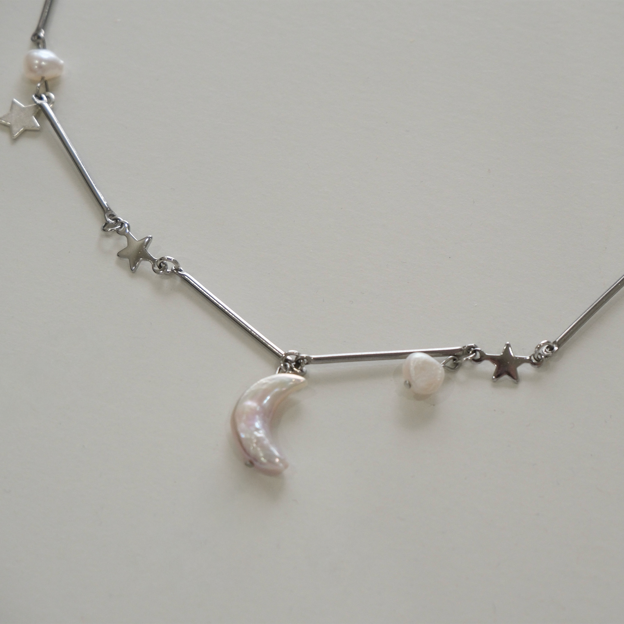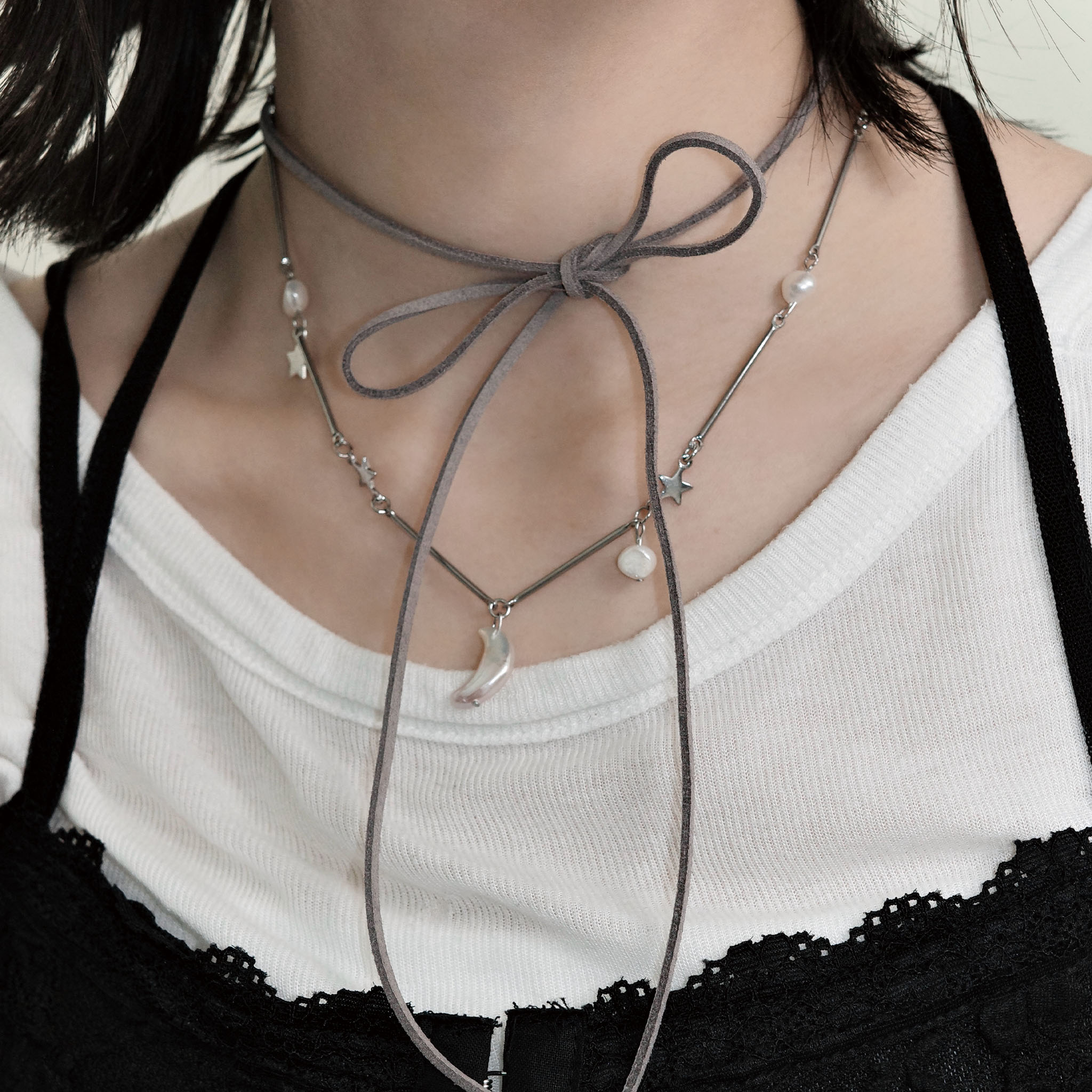 材質:鈦鋼鏈條|月亮珍珠|麂皮繩